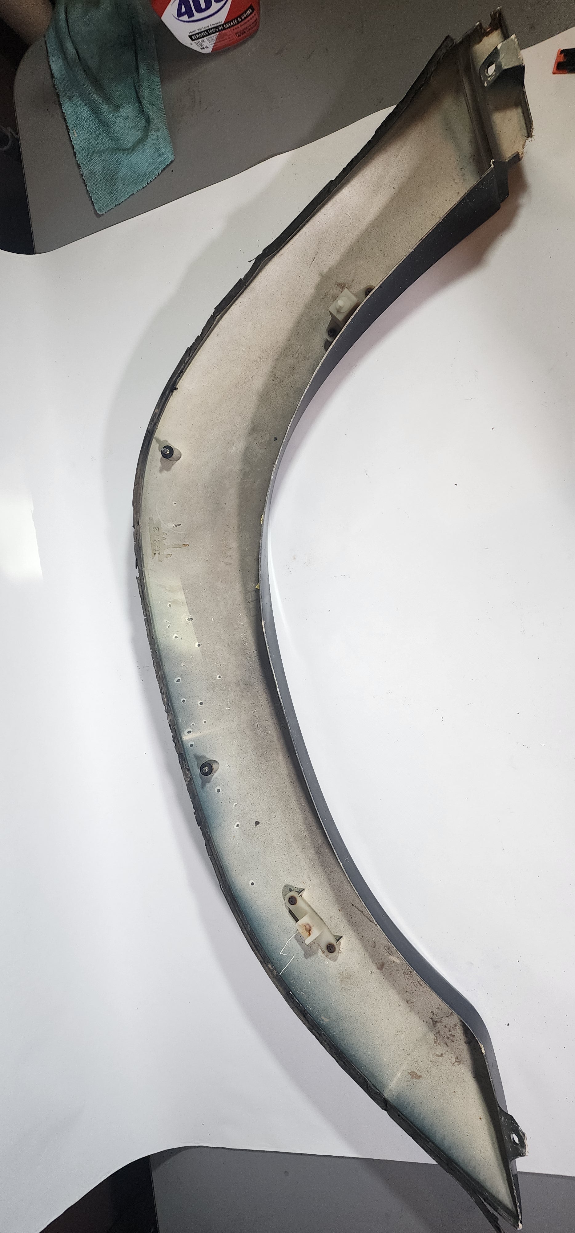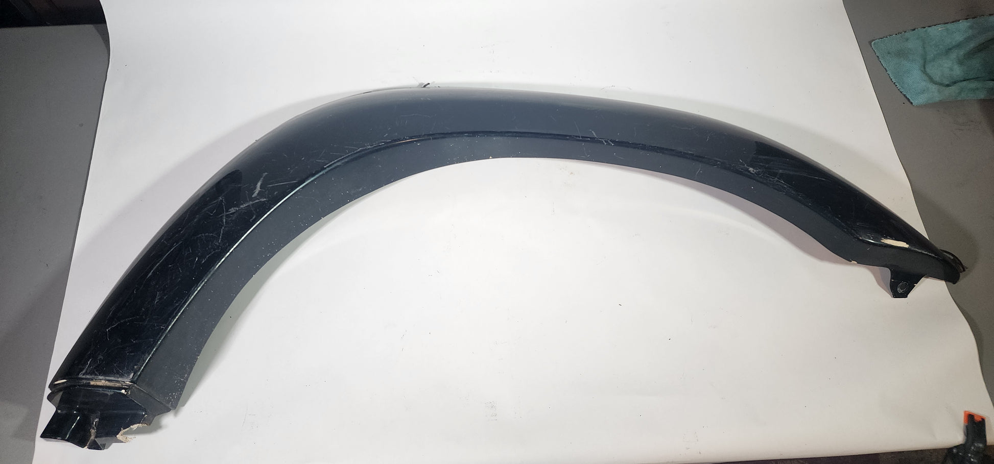 Used, OEM right front fender flare. Will fit 91-92 FJ80. Exterior paint is scratched but structure is overall in good shape. One of the mounting brackets will need replaced. All damage shown in photos.