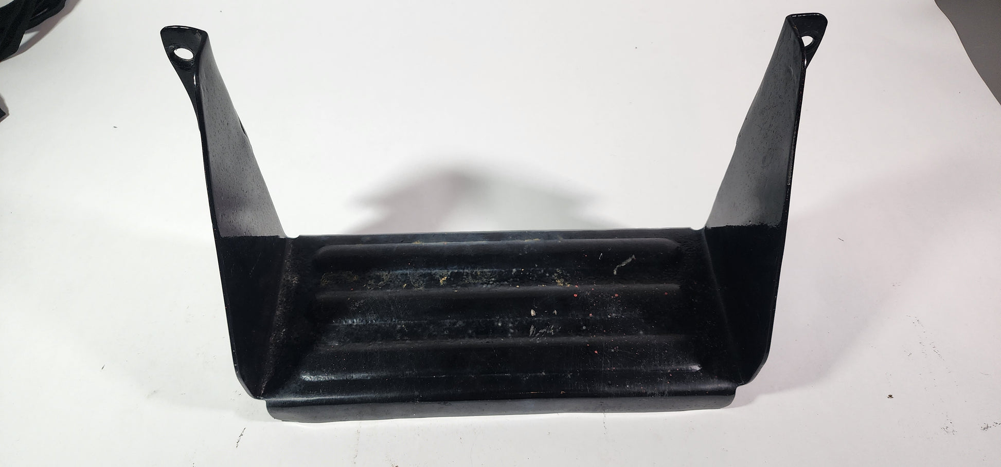 Used rear step for a FJ40. In good shape with a few scratches on the paint. Bolts between the factory bumperettes.
